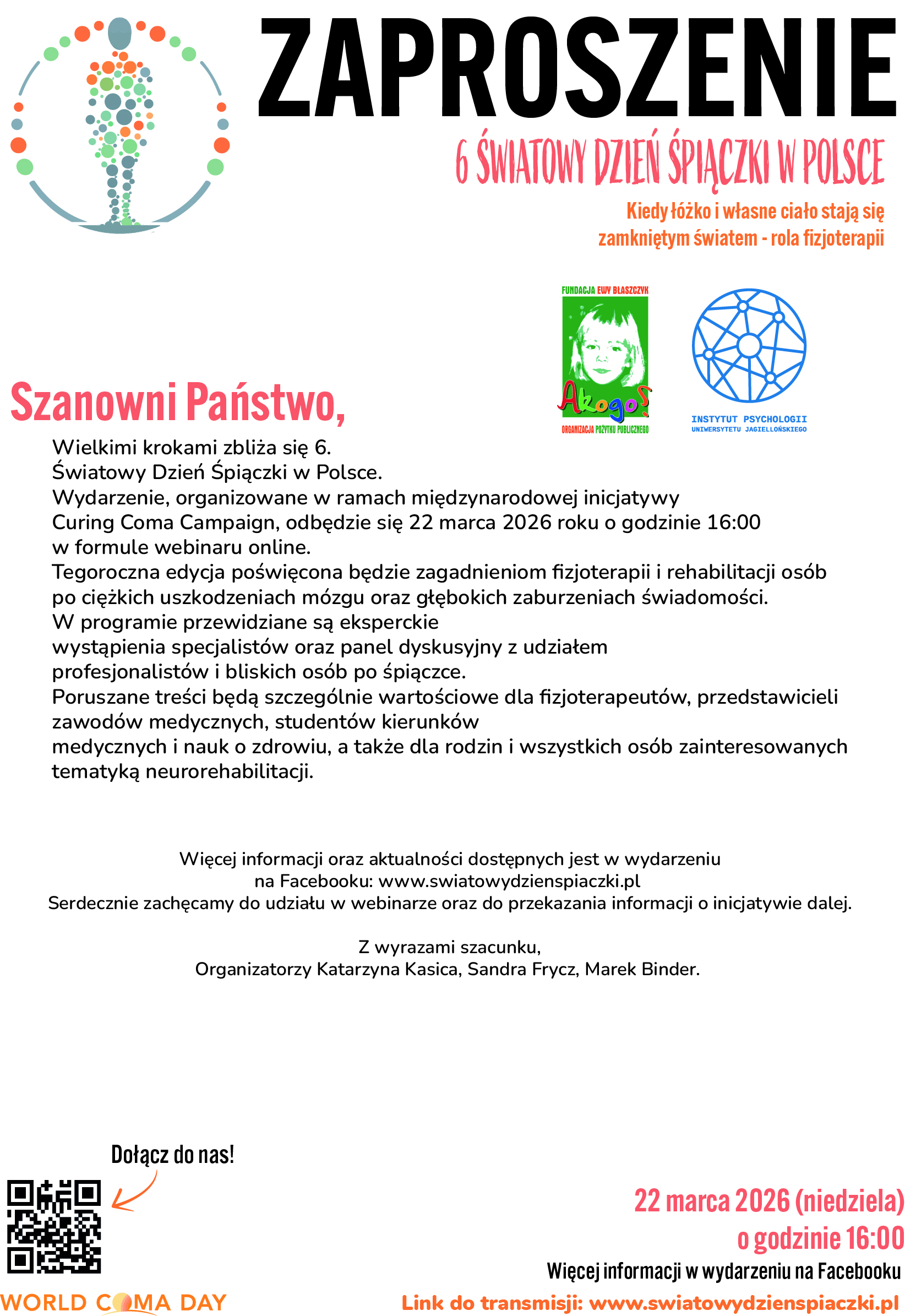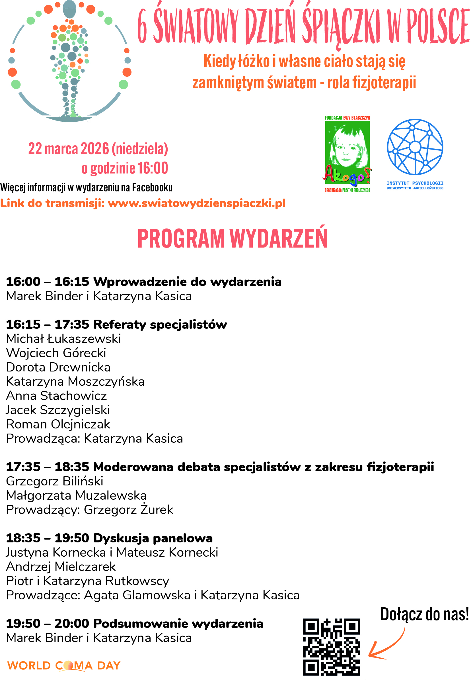 Serdecznie zapraszamy na obchody 6 Światowego Dnia Śpiączki w Polsce.